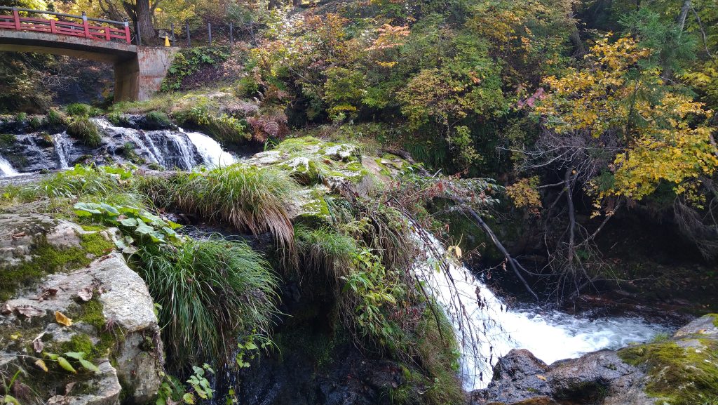 銀山温泉旅館街を流れる銀山川 ↓